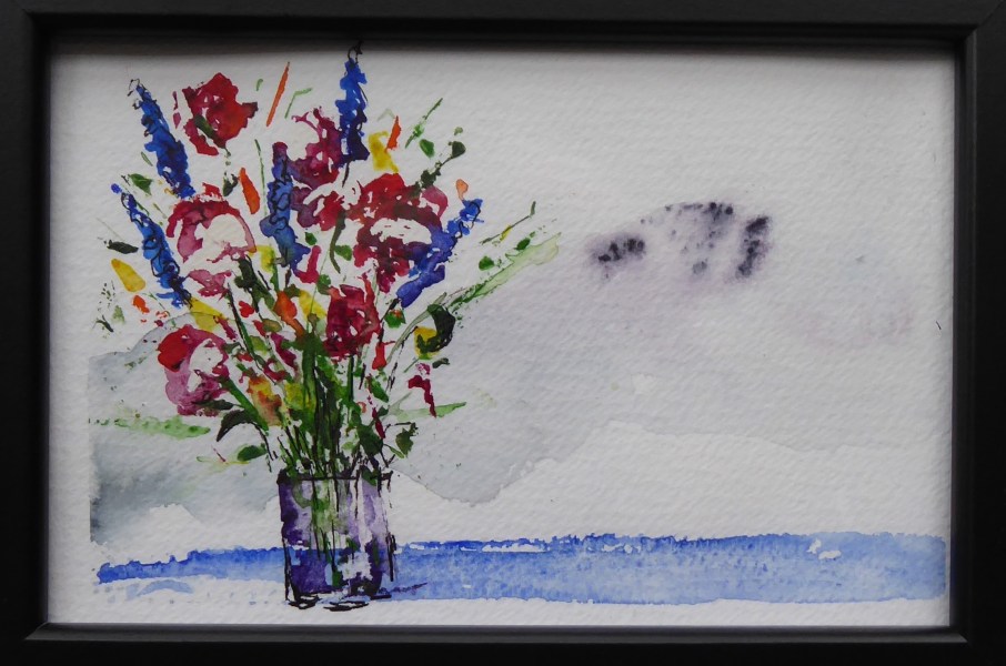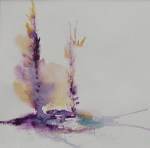A lifetime of observing, creating, dabbling, and experimenting, plus the echoes of living in Japan, has led me to this place. I find myself drawn to working with watercolors and palette knives, two mediums that are challenging to control, yet try their best to work together.